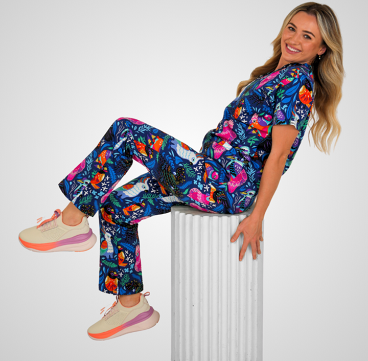 Scrubs come in dozens of colours and patterns. However, most healthcare centres are dress code-enforced, and in the industry, different disciplines are represented with different colours. Ensure you are appropriately dressed to adhere to the dress code. If you have the freedom to choose, go ahead. From fun multicoloured patterns to monochrome fits, you will find any style and colour of scrubs.